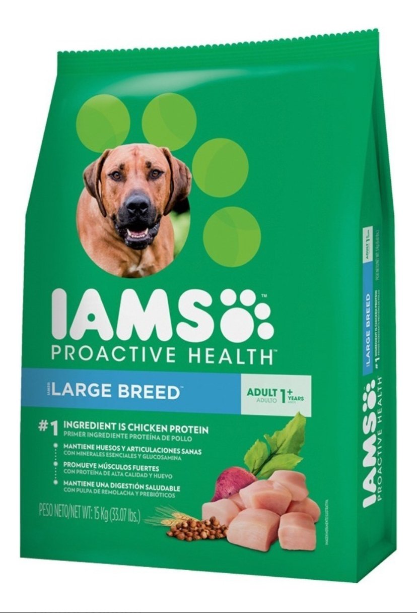 IAMS® PROACTIVE HEALTH – ADULT LARGE BREED es un alimento seco 100% completo y balanceado, desarrollado especialmente para perros adultos de razas grandes, mayores a 24 meses de edad.