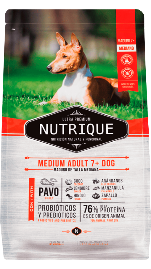 Alimento para perro adulto maduro de talla mediana mayor a 7 años de edad.