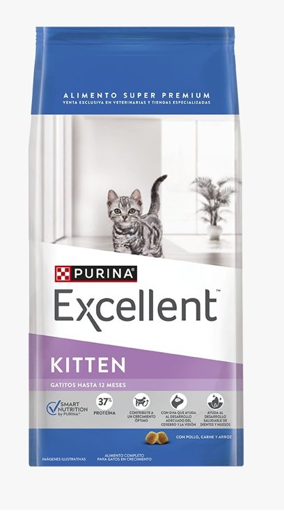 En su primer año de vida los gatitos necesitan una nutrición óptima para favorecer su desarrollo y crecimiento, hasta llegar a su etapa adulta. PURINA® Excellent® Gatitos Pollo y Arroz, ofrece una fórmula completa y balanceada a base de proteínas de alta digestibilidad, equilibrada con calcio y fósforo y con ácidos grasos omega 3 y 6.