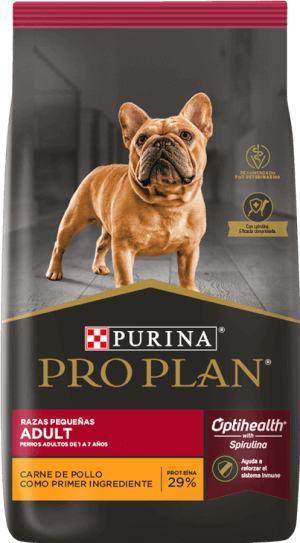Para satisfacer las necesidades nutricionales específicas de los perros de razas pequeñas, PRO PLAN® ha desarrollado OptiHealth Razas Pequeñas, una fórmula que ofrece nutrición concentrada con óptimos niveles de proteínas (29%) y grasas (17%).