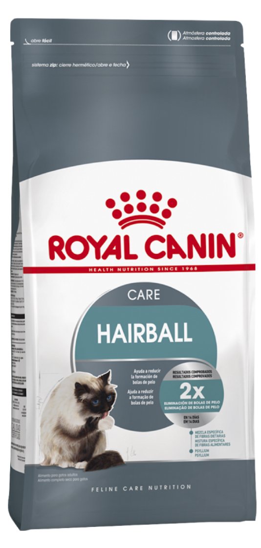 Está formulado con nutrientes específicamente balanceados que ayudan a reducir la formación de bolas de pelo. Contiene una mezcla específica de fibras dietarias, que incluyen el psyllium y fibras insolubles que ayudan a estimular el tránsito intestinal de manera natural. De esta manera, el pelo que diariamente el gato ingiere al acicalarse puede eliminarse a través de las heces en lugar de acumularse en el estómago y luego ser regurgitadas.