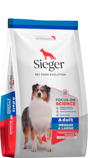 Sieger Adultos ofrece una equilibrada combinación de nutrientes, que contribuyen con el óptimo funcionamiento del sistema digestivo, ayudan a mantener activo el sistema inmunológico y favorecen la salud de la piel. La inclusión de Glucosamina y Condroitín sulfato promueve la salud osteoarticular en perros de estructura mediana y grande.