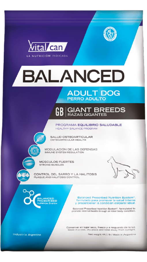 Vitalcan Balanced es ideal para perros adultos de raza gigante porque su Programa Equilibrio Saludable les proporciona: