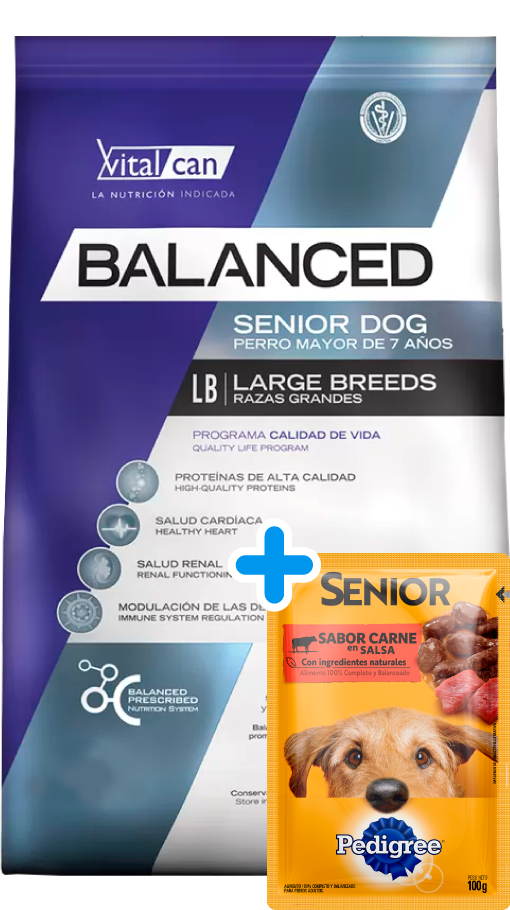 Vitalcan Balanced es ideal para perros maduros de raza grande porque su Programa Calidad de Vida les proporciona: